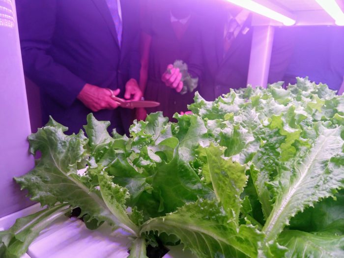 “This is the baby lettuce that restaurants love,” said George. (And, yes, it tastes very good — members of the press were also given samples of the lettuce to try.)