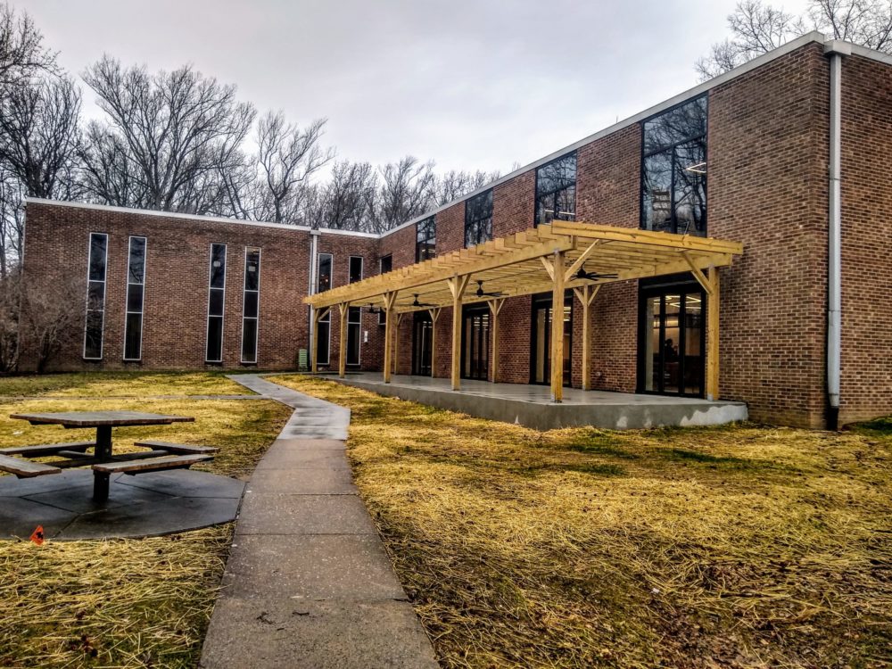 “It’s about the outdoors,” Larason said, opening one of four large windows — really more like glass doors — that open to the pergola. In the spring, the doors will be open on nice days, giving the space an indoor-outdoor feel, he said. Ideally, members will be able to work on the outdoor deck, once the Wi-Fi reliably covers the outside space.
