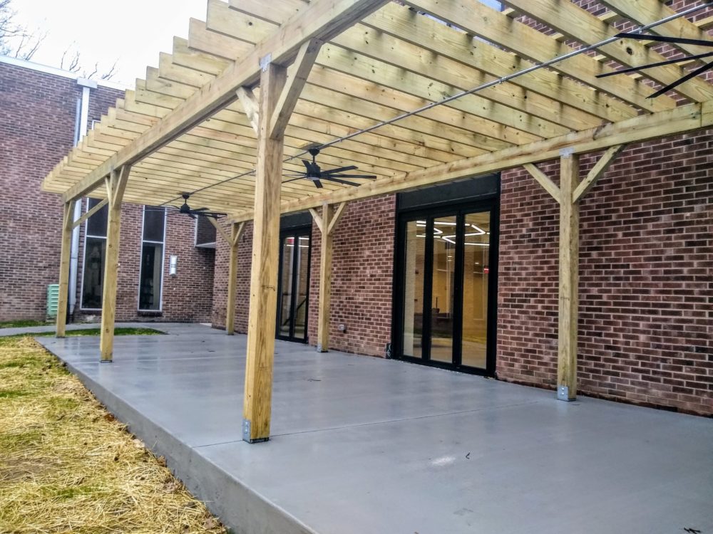 The pergola, though not completely finished, is the first thing you notice when you approach The Mill Concord. It’s been open to several lessees who have had second-floor offices for months now, but it’s still very much a work in progress. Andrew Larason, The Mill’s community manager who is involved with the interior design, gave Technical.ly a tour of the space on Monday afternoon, which will soon have its big grand opening (date TBA).