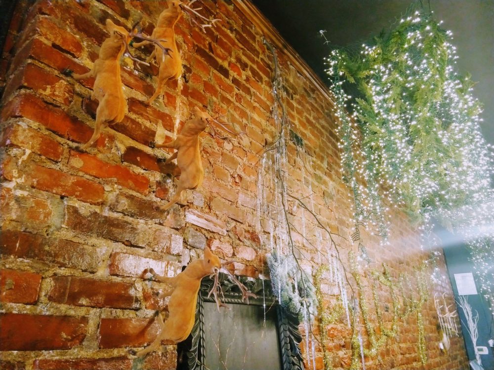 The aesthetic is Christmas kitsch overload: When you walk in, you’re immersed in a cozy, glittery, festive atmosphere with a defined reindeer theme.