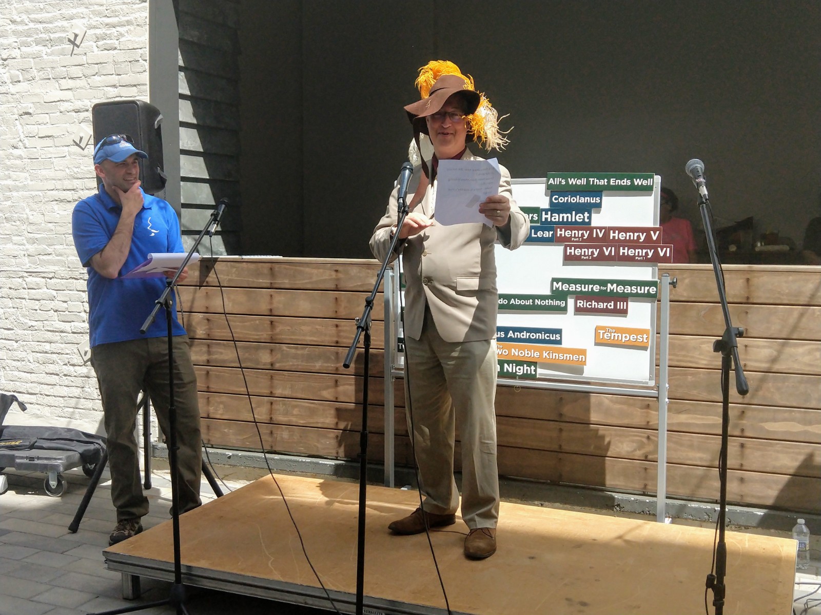 You may not have known it has a name, but Chelsea Plaza — that recently-added walkway between Chelsea Tavern and UDairy Creamery — became a fully-functioning community space this week. The 4th Annual Shakespeare Day organized by DelShakes celebrated the 455th birthday of The Bard by presenting volunteer-read excerpts from all 38 of his plays in about 40 minutes.